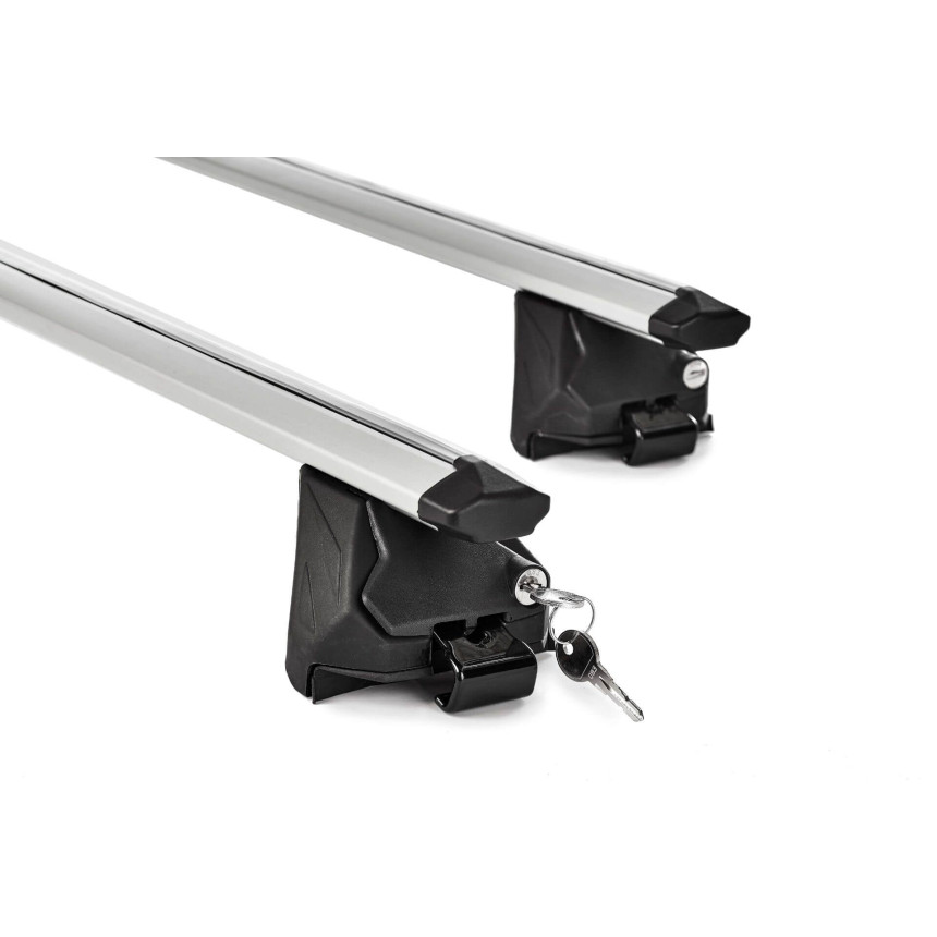 Un caoutchouc antidérapant est appliqué sur la partie supérieure des barres de toit en aluminium afin d'éviter que la charge ne se déplace le long de la galerie de toit de la voiture. Chaque système est équipé d'une serrure qui empêche le vol.